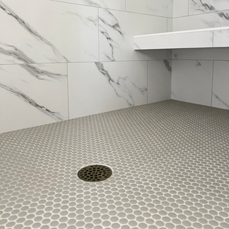 You know I love tile and we definitely used some good ones in this house, but ultimately didn't want the tile to compete with the rest of the bold selections in the home. The kitchen backsplash is one of my absolute favorites. It's a more modern take on a traditional subway tile, providing more movement both with the handmade feel and with the color variation. It's a subtle way to add more interest while still keeping it very simple. My second favorite would be the penny rounds we used in the jack and jill bath. The color is a soft aloe green color and really compliments the wallpaper. I could use penny rounds anywhere! It's classic but can be used with any style. And green? My most favorite color. The master bath is more a softer space. Large 12x24 faux marble porcelain tile covers the floor and shower walls. The base of that tile is a very clean white so we were able to bring in a little color with the cabinets and walls while still keeping it very calm. Through in some more penny rounds in the shower and you've got a very clean and classic looking bathroom.